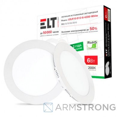 Характеристики Светильник светодиодный LDLR01-D12-6-4200-White, 6Вт, 220В, 4200К ELT: