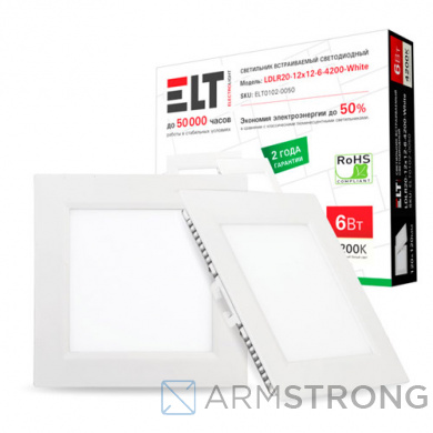 Характеристики Светильник светодиодный LDLR02-12×12-6-4200-White, 6Вт, 220В, 4200К ELT: