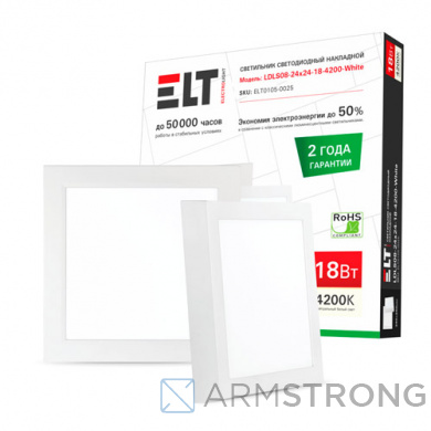 Характеристики Светильник светодиодный LDLS08-24×24-18-4200-White, 18Вт, 220В, 4200К ELT: