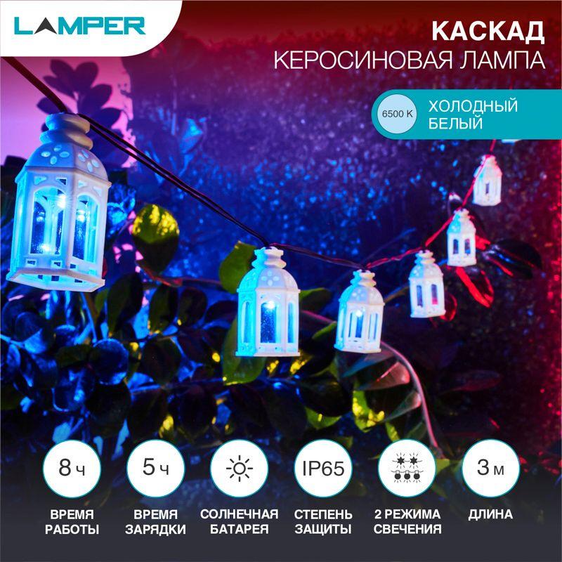 Характеристики Светильник светодиодный садовый «Каскад Керосиновая Лампа» 3м 3Вт IP65 с выносной солнечн. панелью 1м; аккум. 2 режима работы: мигание и постоян. свечение Lamper 602-251: