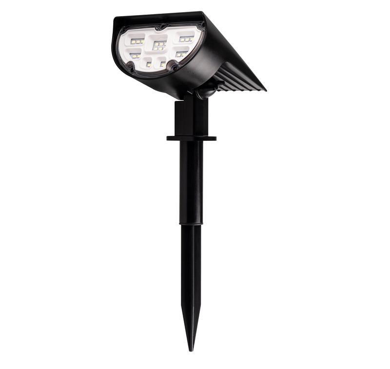 Светодиодный влагозащищенный прожектор с солнечной батареей. Предназначен для подсветки садовых и дачных участков, стен домов, декораций и т.п. Дальность светового луча 8-10 метров Автоматическое включение/выключение при наступлении темного/светлого времени суток (датчик освещенности) 2 режима работы: 100% яркости (100 Лм) 50% яркости (50 Лм) Время непрерывной работы при полностью заряженном аккумуляторе: 15 часов в экономичном режиме 8 часов в режиме максимальной яркости Материал корпуса: ABS-пластик, Светильник можно устанавливать в грунт и на вертикальную поверхность. Крепеж (два самореза и дюбеля) входит в комплект поставки.