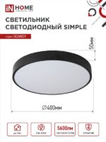 Характеристики Светильник светодиодный SCANDY SIMPLE-7040B 70Вт 230В 4000К 5600Лм 400х50мм черный IN HOME: