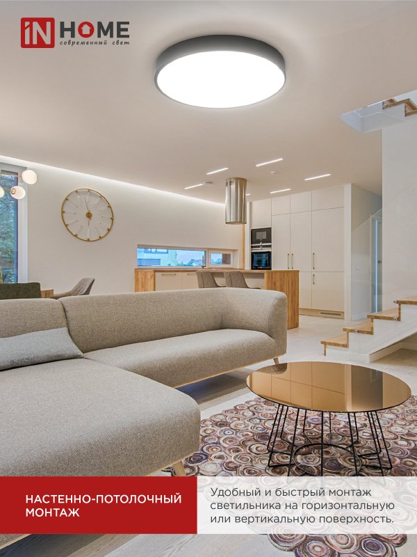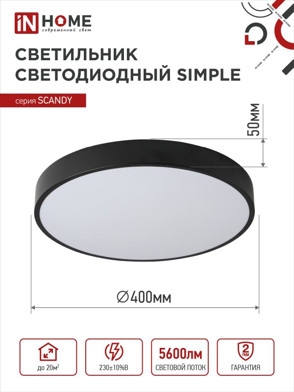 Характеристики Светильник светодиодный SCANDY SIMPLE-7040B 70Вт 230В 4000К 5600Лм 400х50мм черный IN HOME: