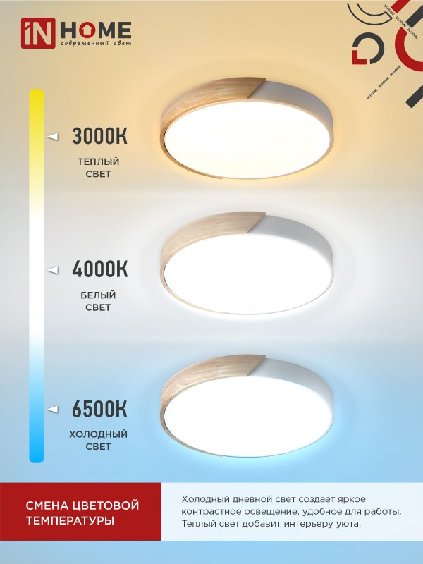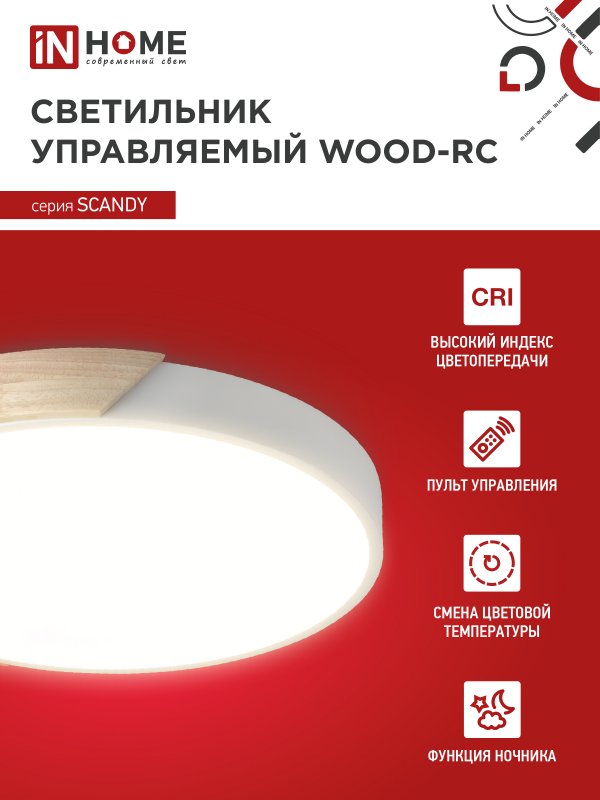 Характеристики Светильник светодиодный SCANDY WOOD-75RCW 75Вт 230В 3000-6500K 6000Лм 400×50мм с пультом ДУ белый IN HOME: