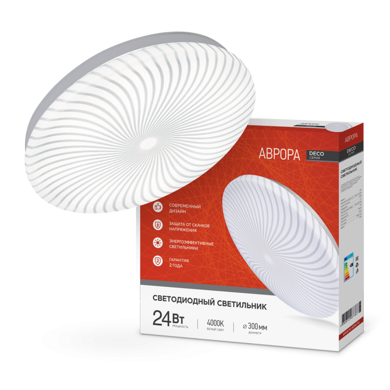Назначение и применение Светильник светодиодный серии DECO АВРОРА 24Вт 230В 4000К 2160Лм 330х55мм IN HOME
