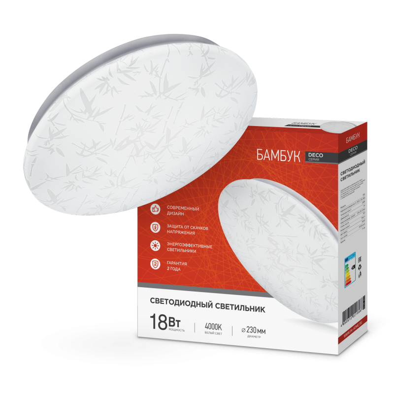 Назначение и применение Светильник светодиодный серии DECO БАМБУК 18Вт 230В 4000К 1620Лм 260х55мм IN HOME