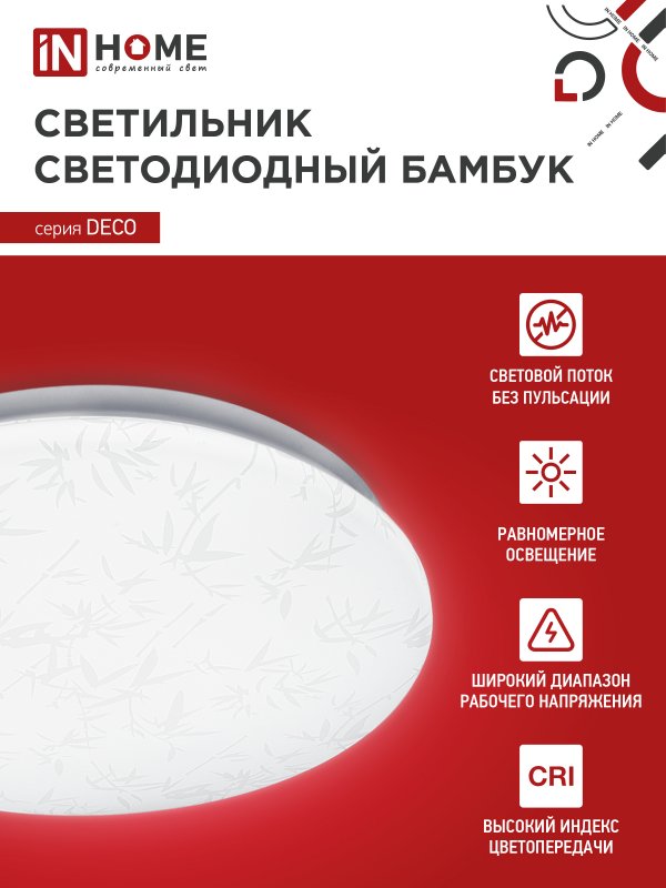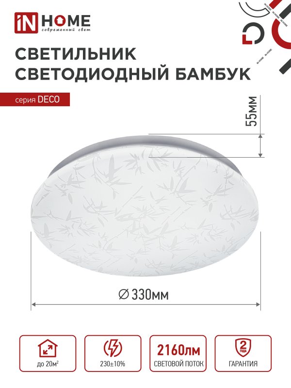 Назначение и применение Светильник светодиодный серии DECO БАМБУК 24Вт 230В 4000К 2160Лм 330х55мм IN HOME