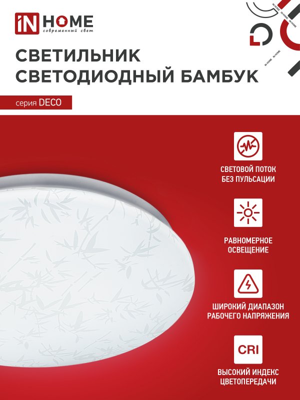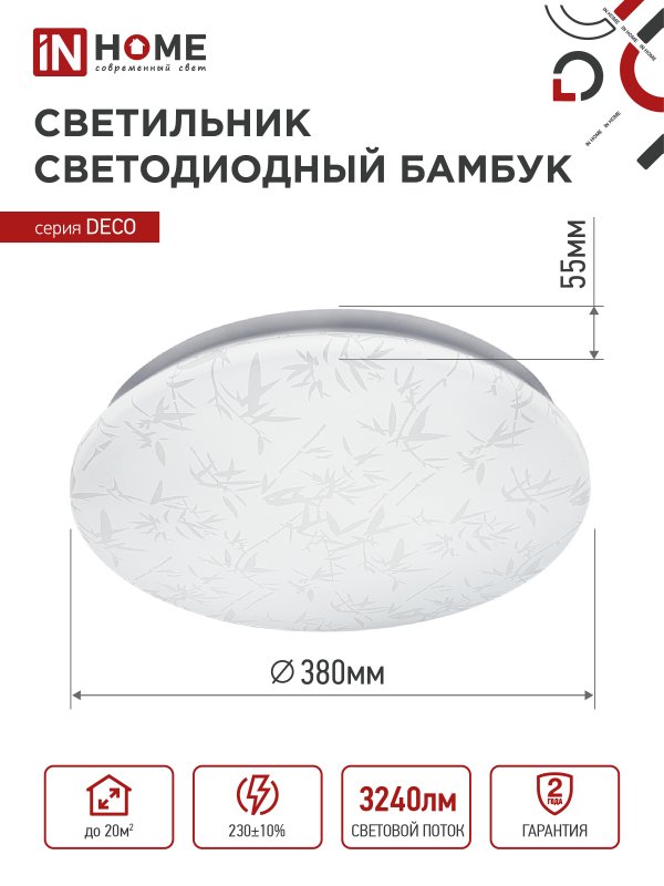 Назначение и применение Светильник светодиодный серии DECO БАМБУК 36Вт 230В 6500К 3240Лм 380х55мм IN HOME
