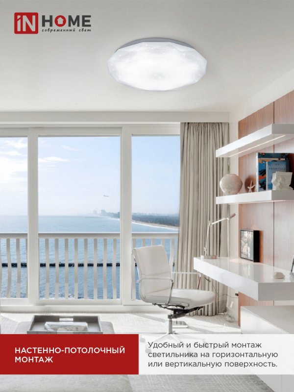 Назначение и применение Светильник светодиодный серии DECO ДАЙМОНД 24Вт 230В 4000К 2160Лм 330х55мм IN HOME