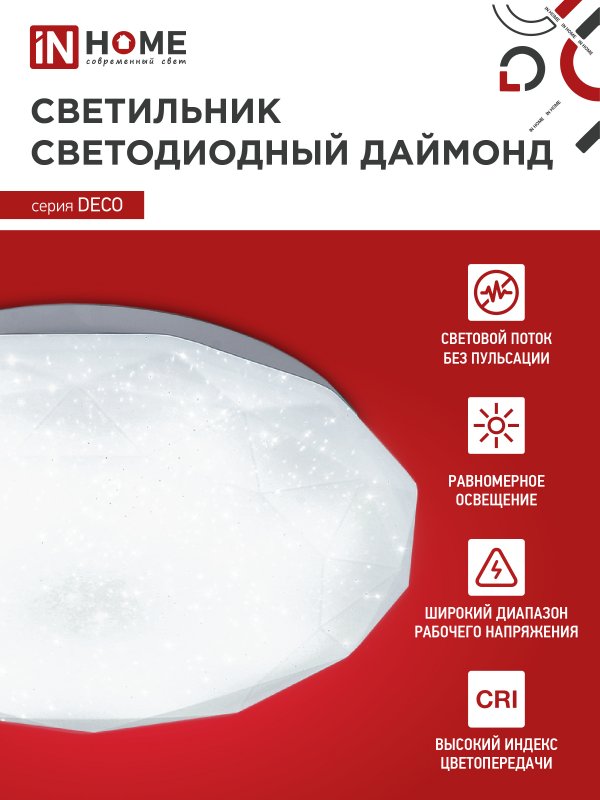 Назначение и применение Светильник светодиодный серии DECO ДАЙМОНД 24Вт 230В 6500К 2160Лм 330х55мм IN HOME