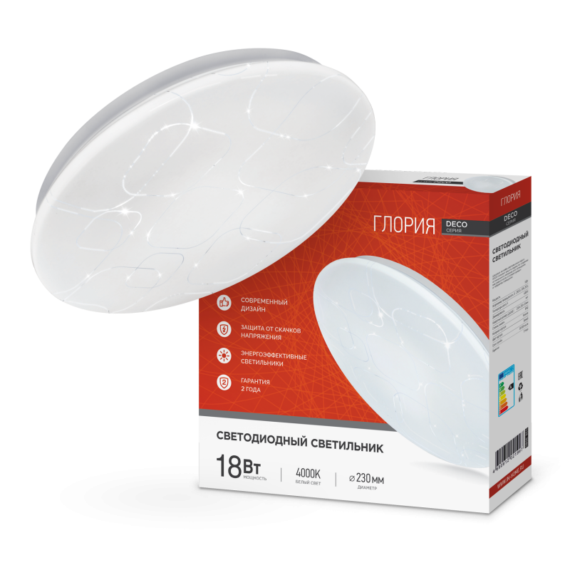 Назначение и применение Светильник светодиодный серии DECO ГЛОРИЯ 18Вт 230В 4000К 1620Лм 260х55мм IN HOME