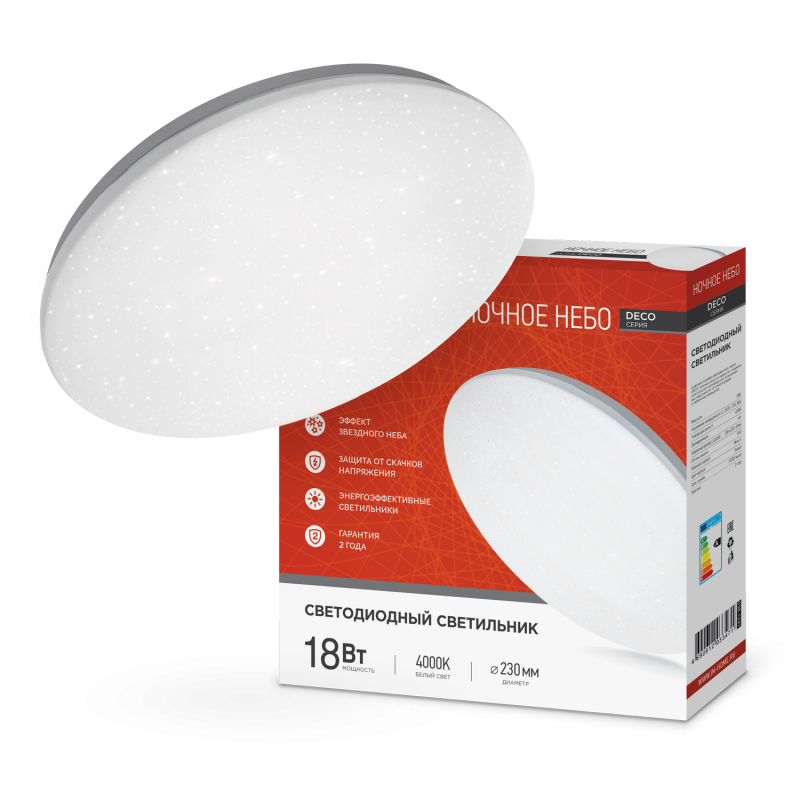 Назначение и применение Светильник светодиодный серии DECO НОЧНОЕ НЕБО 18Вт 230В 4000К 1620Лм 260х55мм IN HOME