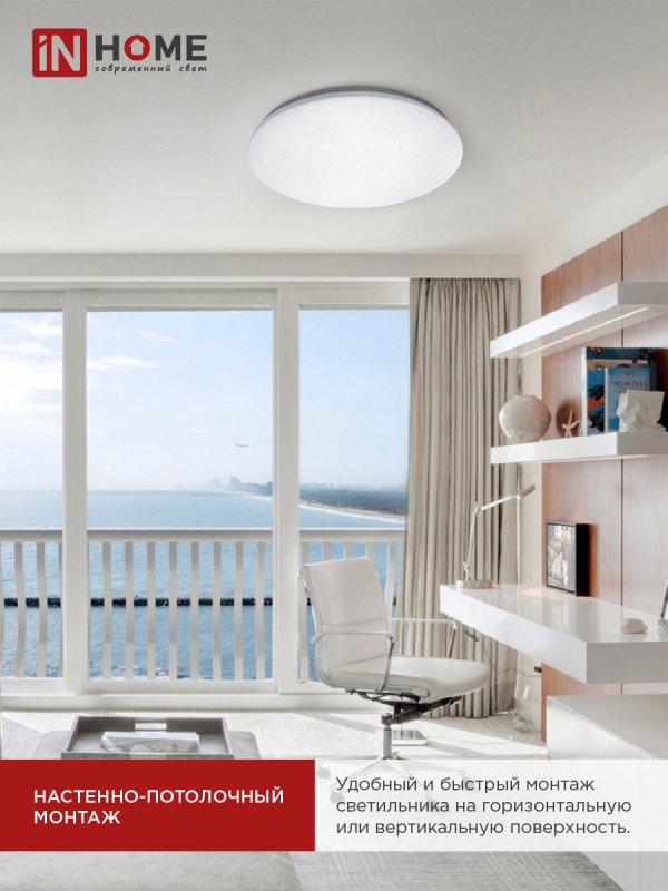 Характеристики Светильник светодиодный серии DECO НОЧНОЕ НЕБО 48Вт 230В 4000К 4320Лм 380х55мм IN HOME:
