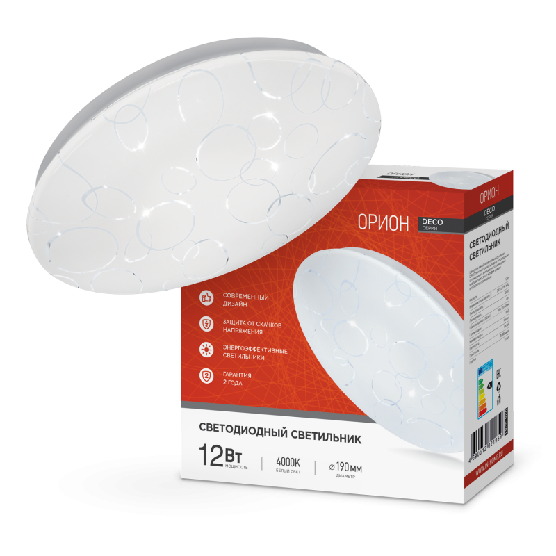 Назначение и применение Светильник светодиодный серии DECO ОРИОН 12Вт 230В 4000К 1080Лм 210х65мм IN HOME