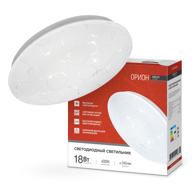 Назначение и применение Светильник светодиодный серии DECO ОРИОН 18Вт 230В 4000К 1620Лм 260х55мм IN HOME
