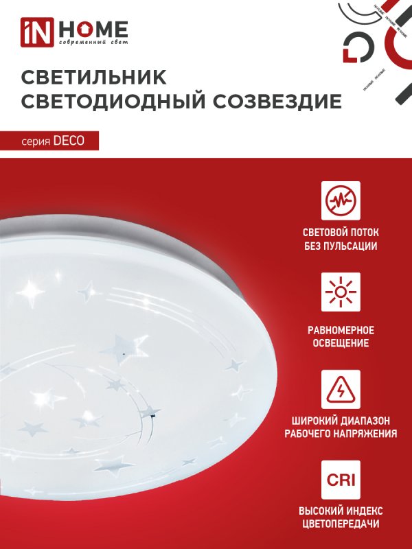 Характеристики Светильник светодиодный серии DECO СОЗВЕЗДИЕ 48Вт 230В 6500К 4320Лм 380х55мм IN HOME: