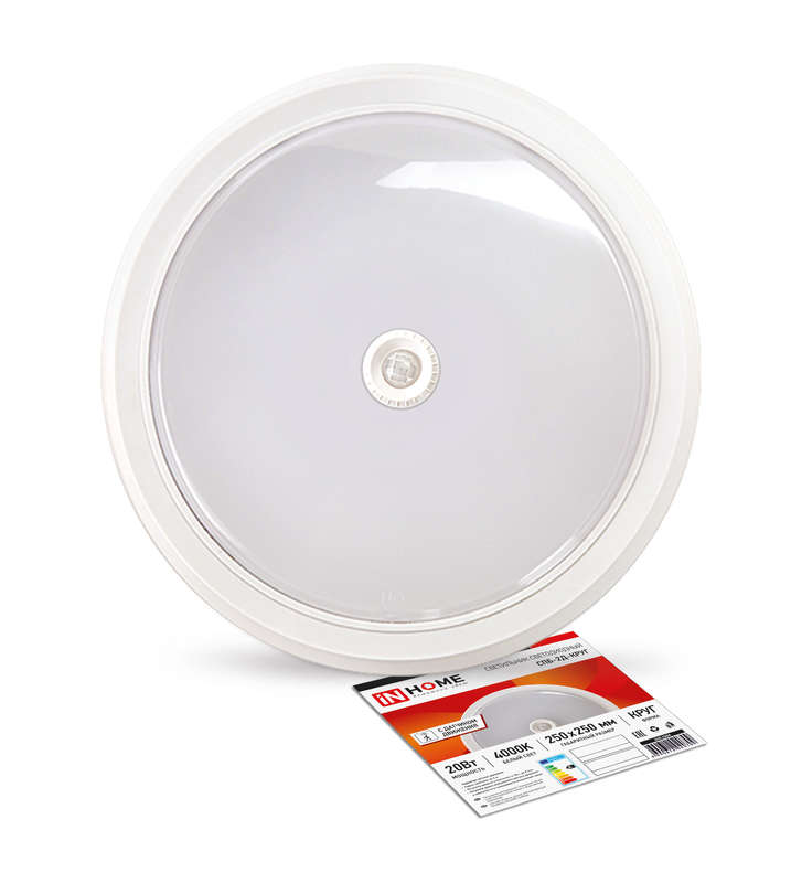 Круглый светильник с датчиком движения СПБ-2Д-КРУГ ТМ IN HOME с современными светодиодами серии SMD характеризуется высоким классом энергоэффективности – «А+». Продуманная конструкция предусматривает возможность настройки степени освещенности и времени отключения (в диапазоне от 30 секунд до 8 минут). Регулировка чувствительности позволяет устранить ложные срабатывания (например, на животных). Для изменения настроек достаточно открыть плафон, нажав на защелку в точке касания «ON». Рекомендован к использованию при температурах: от +1°С до +40°С. Линейка светильников представлена в диапазоне мощностей от 10Вт до 24Вт, с диаметром корпусов от 155 до 310 мм соответственно. Цвет исполнения – белый. Средний срок службы 30 000 часов. Гарантия 2 года. Применение Высокие технические характеристики, лаконичный дизайн и компактный размер изделия позволяют использовать его как для общественного, так и для бытового освещения. В том числе светильник прекрасно подойдет для локального и общего освещения второстепенных помещений: холлов, вестибюлей, коридоров, лестничных пролётов, санузлов, подсобок. Преимущества Светильник СПБ-2Д-КРУГ обладает высоким уровнем светоотдачи и отличается стабильной работой в широком диапазоне значений входного напряжения (207 – 253В). Осветительный прибор изготовлен из безопасных и современных материалов, не подверженных старению, пожелтению, деформациям, а также воздействию высоких температур. Не содержит вредных, ядовитых и пожароопасных веществ. Матовый рассеиватель обеспечивает равномерное, безопасное для глаз освещение, без пульсации Основные достоинства изделия: • высокая экономичность • отсутствие пульсации • универсальность монтажа • минимальная цена Монтаж Универсальная конструкция предусматривает два вида накладного монтажа: настенный и потолочный. Светильник можно устанавливать на вертикальные и горизонтальные поверхности (в том числе на основе дерева, фанеры, гипсокартона) толщиной от 2 мм. Прибор укомплектован дюбелями и саморезами для оперативного монтажа