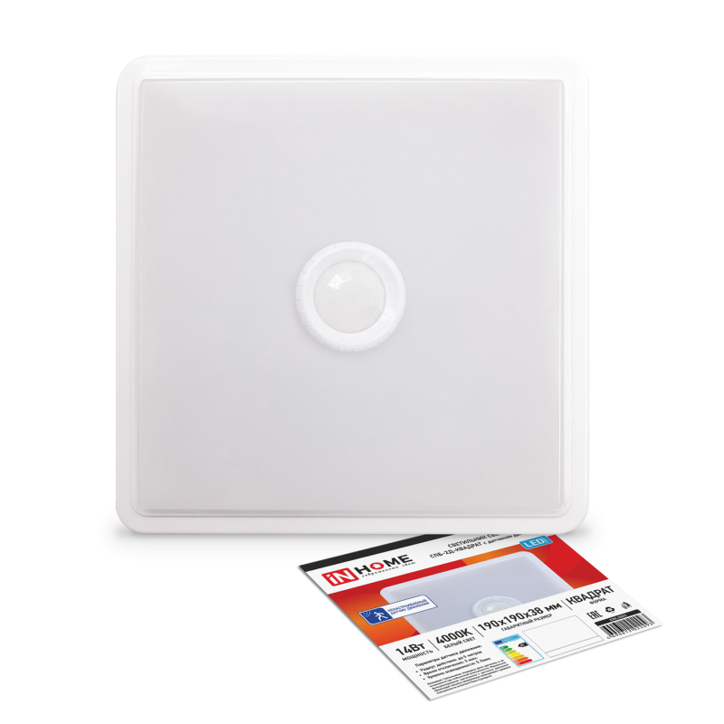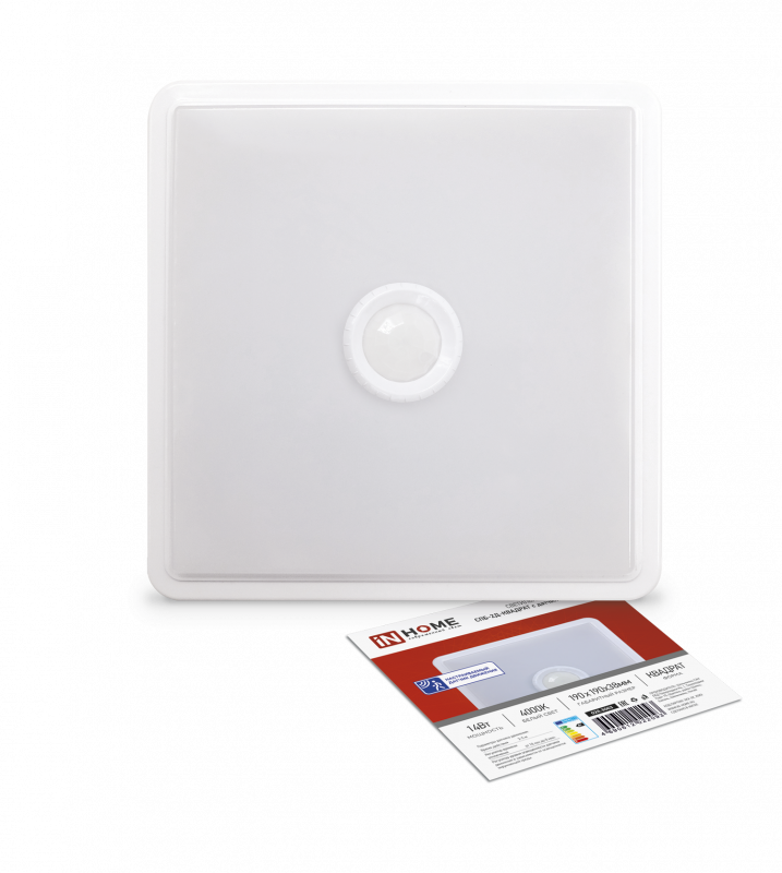 Характеристики Светильник светодиодный СПБ-2Д-КВАДРАТ 14Вт 4000К 1100Лм 190мм с датчиком белый IN HOME: