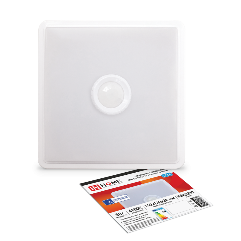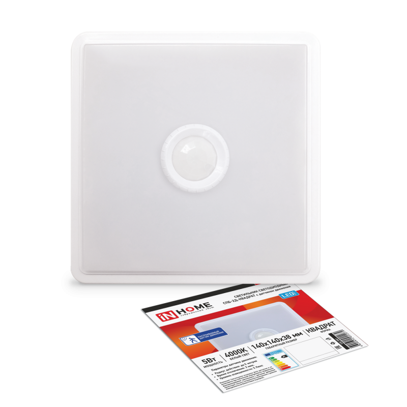 Характеристики Светильник светодиодный СПБ-2Д-КВАДРАТ 5Вт 230В 4000К 400Лм 140мм c датчиком белый IN HOME: