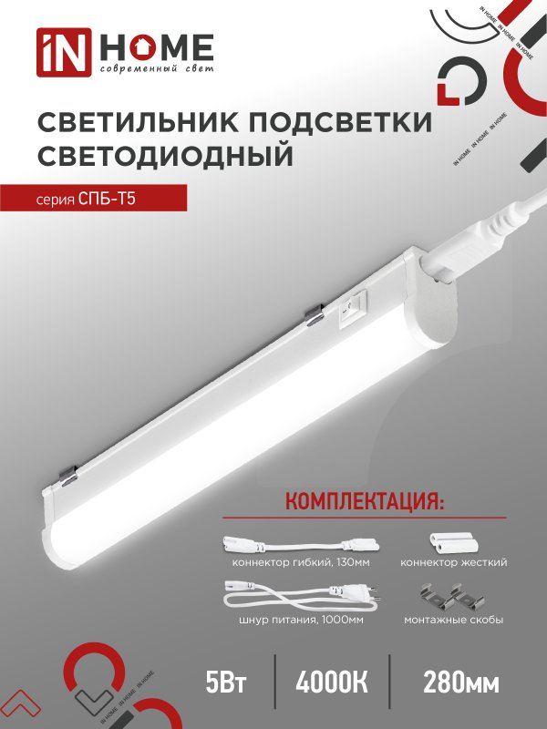 Назначение и применение Светильник светодиодный СПБ-Т5 5Вт 230В 4000К 450Лм 300мм IN HOME