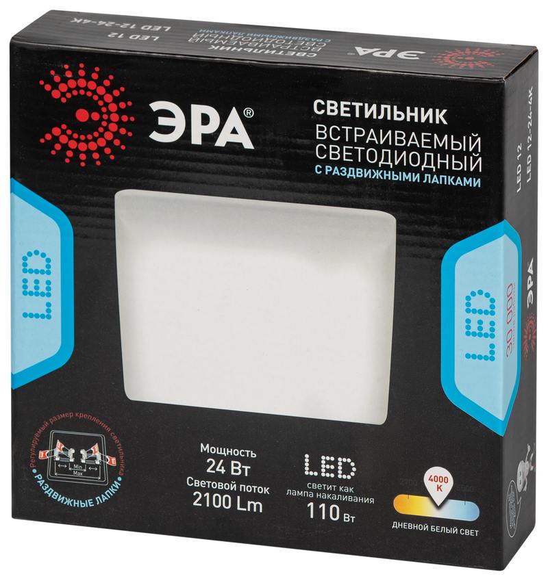 Характеристики Светильник светодиодный встраиваемый ЭРА LED 12-24-4K квадратный регулируемый 24Вт 4000K: