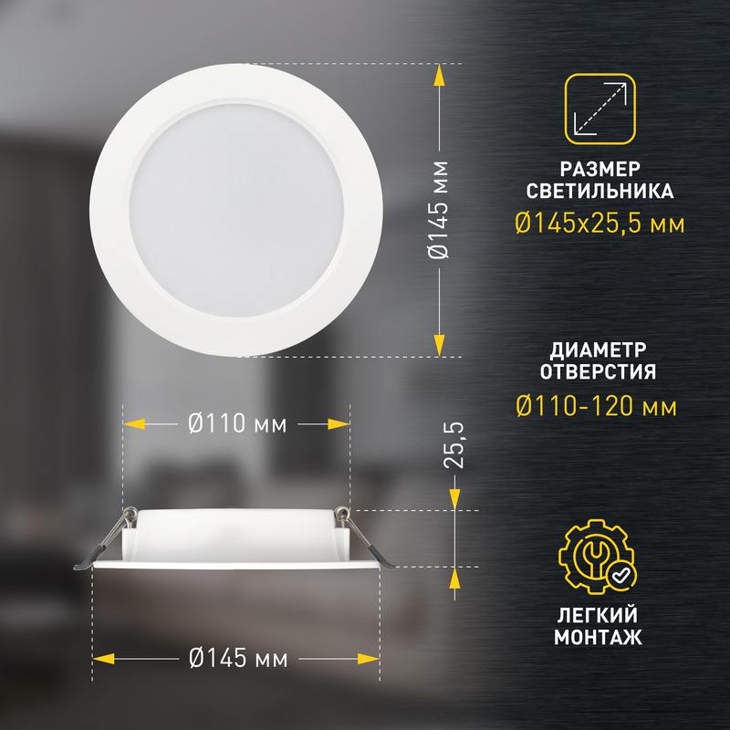 Характеристики Светильник светодиодный встраиваемый ЭРА LED 17-12-3K круглый 12Вт 3000К: