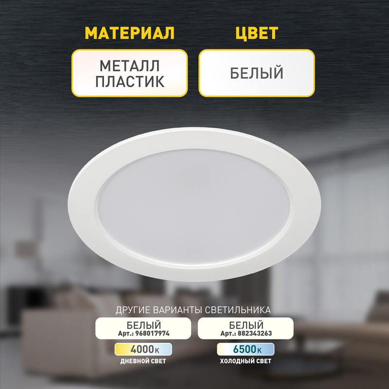 Характеристики Светильник светодиодный встраиваемый ЭРА LED 17-15-3K круглый 15Вт 3000К: