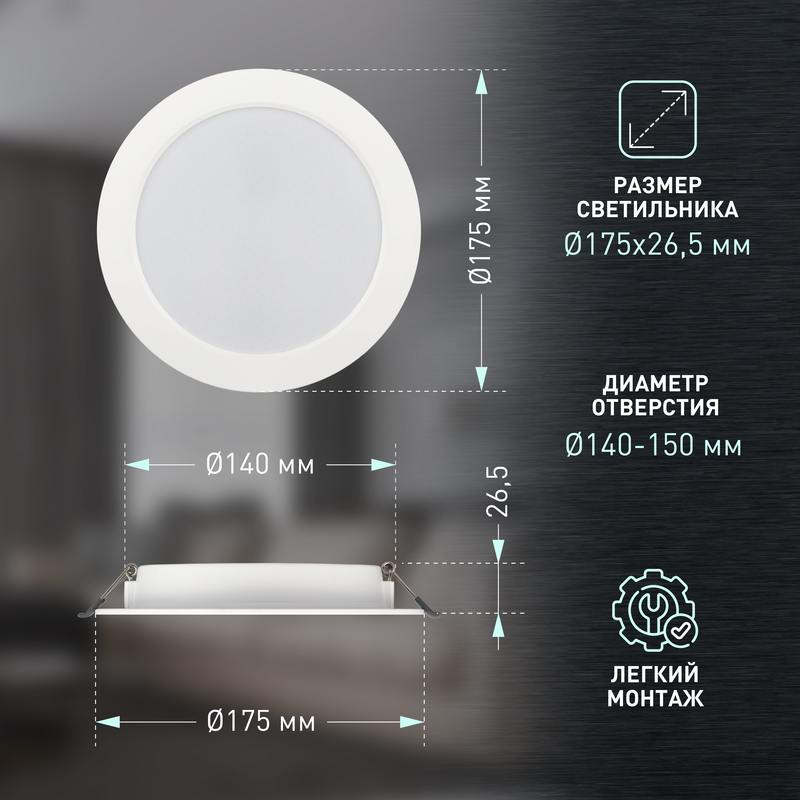 | Размер светильника | D175x26.5 |