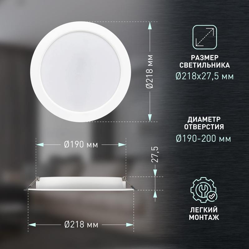 | Размер светильника | D218x27.5 |