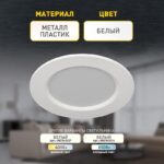 Характеристики Светильник светодиодный встраиваемый ЭРА LED 17-6-3K круглый 6Вт 3000К: