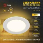 Характеристики Светильник светодиодный встраиваемый ЭРА LED 17-9-3K круглый 9Вт 3000К: