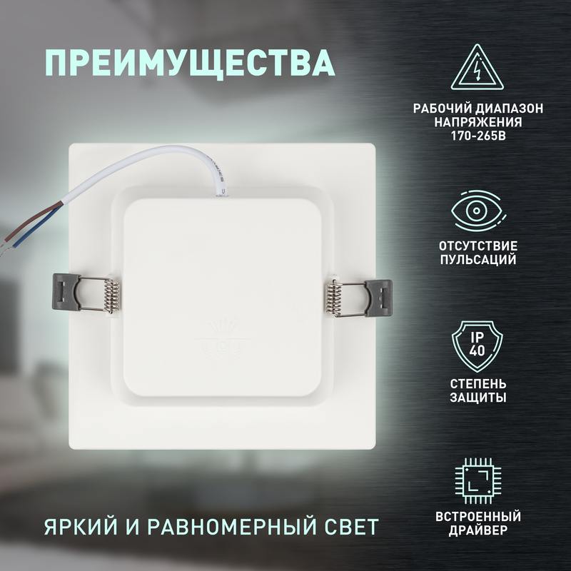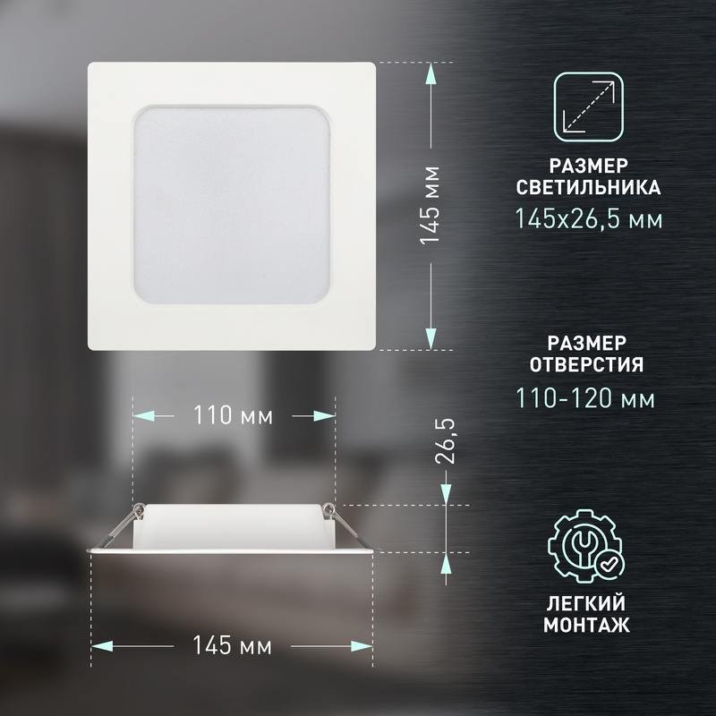 Характеристики Светильник светодиодный встраиваемый ЭРА LED 18-12-4K квадратный 12Вт 4000К: