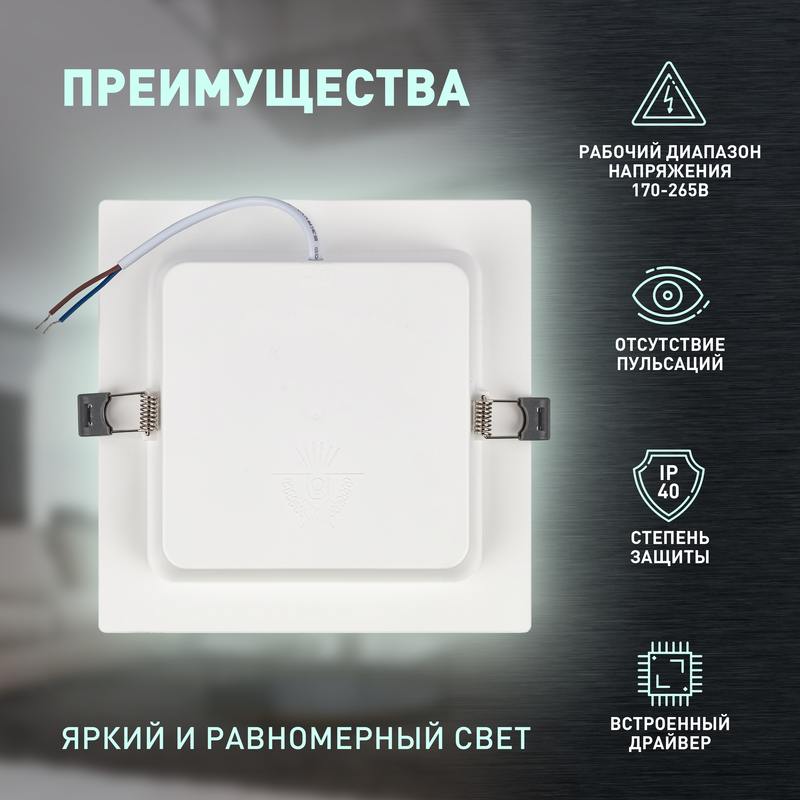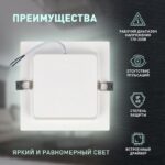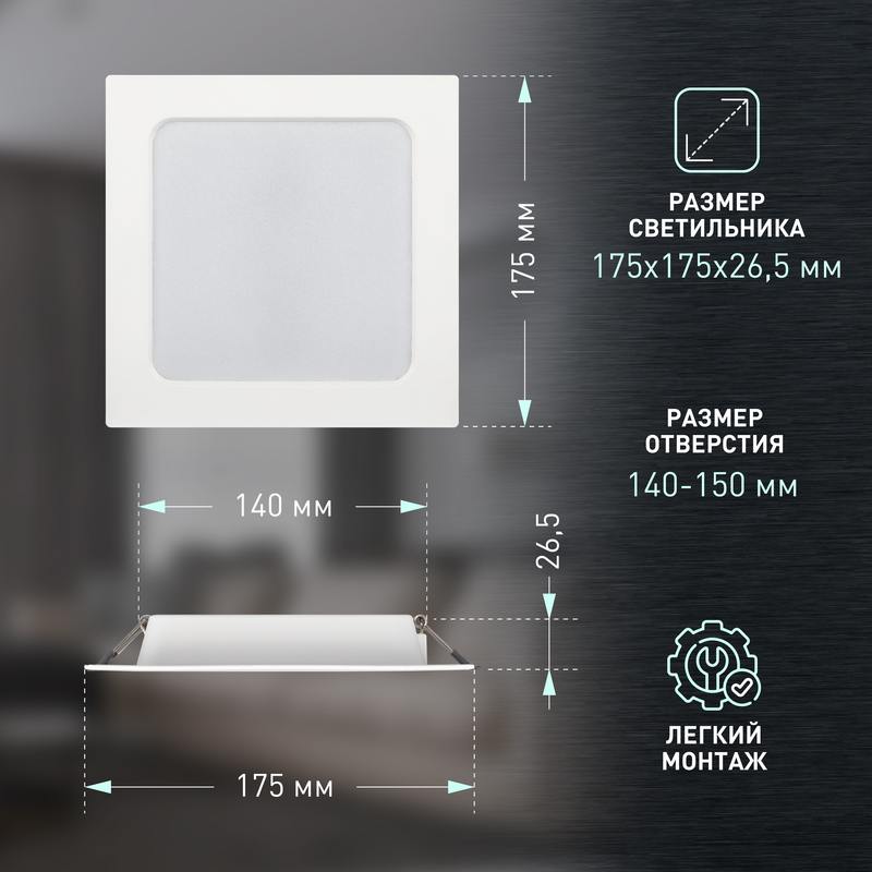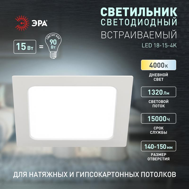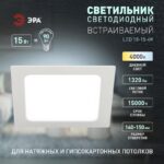 Характеристики Светильник светодиодный встраиваемый ЭРА LED 18-15-4K квадратный 15Вт 4000К:
