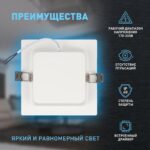 Характеристики Светильник светодиодный встраиваемый ЭРА LED 18-18-6K квадратный 18Вт 6500К: