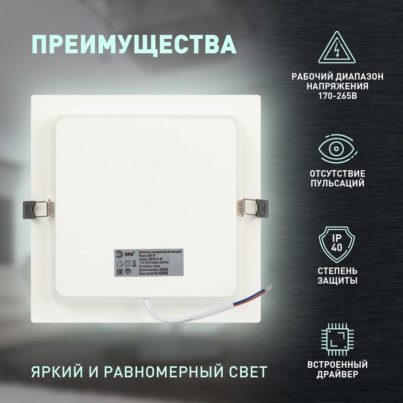 Характеристики Светильник светодиодный встраиваемый ЭРА LED 18-24-4K квадратный 24Вт 4000К: