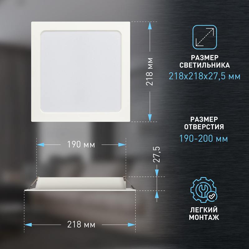 | Размер светильника | 218x218x27.5 |