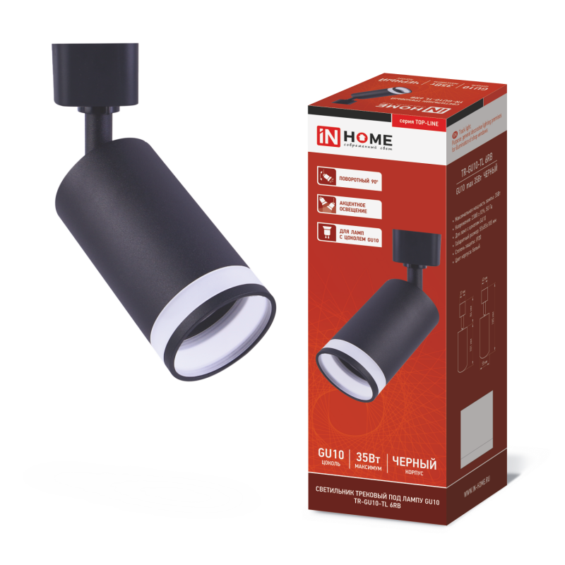 Характеристики Светильник трековый под лампу с подсветкой TR-GU10-TL 6RB GU10 230В черный серии TOP-LINE IN HOME: