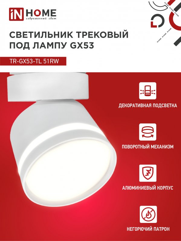Характеристики Светильник трековый под лампу с подсветкой TR-GX53-TL 51RW GX53 белый серии TOP-LINE IN HOME: