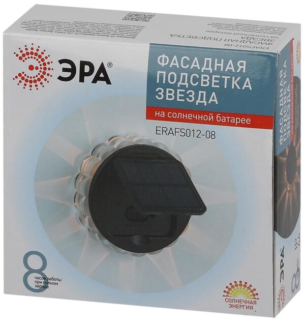 Характеристики Светильник уличный ЭРА ERAFS012-08 на солнечной батарее настенный Звезда 1 LED 7*7*2 см: