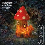 Фигурка садовая "Лукоморье" от компании ЭРА станет милым украшением Вашего загородного участка! Этот уличный светодиодный светильник, похожий на жилище гнома, оживит пейзаж дачи — разместите его в палисаднике, подсветите террасу, клумбу, кустарник, аллею или вход в дом. Фонарь ERASF22-13 высотой 23 см выполнен из полистоуна, все детали хорошо проработаны. Беспроводной садовый светильник функционирует на солнечной батарее — данный тип получения энергии является самым экологичным, энергоемким, а также бесшумным. Питание происходит во включенном режиме в солнечную погоду, фигурка автоматически загорается с наступлением ночи и работает до 8 часов. Сказочный домик с теплым светом и крышей в виде шляпки мухомора подарит вашему саду уют и загадочность!