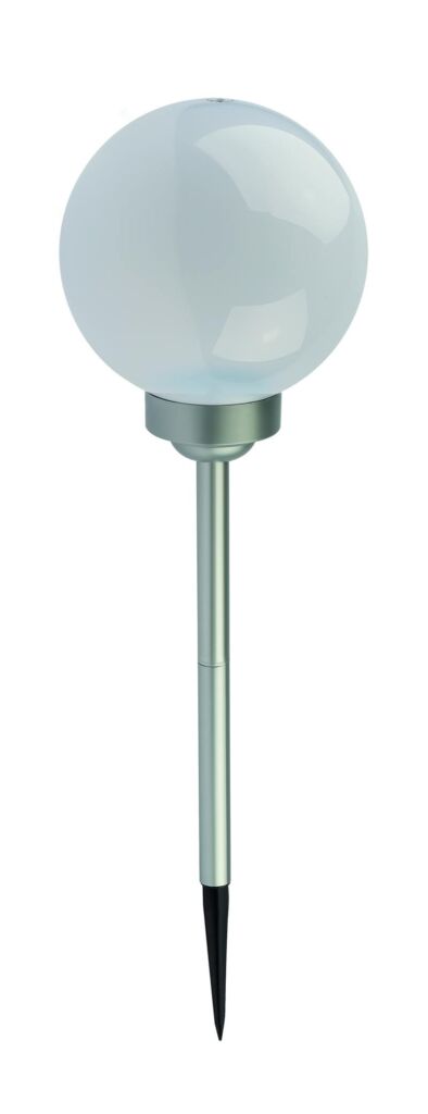 Классическая модель садового светильника в виде сферы. Мягкое свечение холодного белого света послужит прекрасным украшением при оформлении садовых дорожек и клумб.