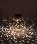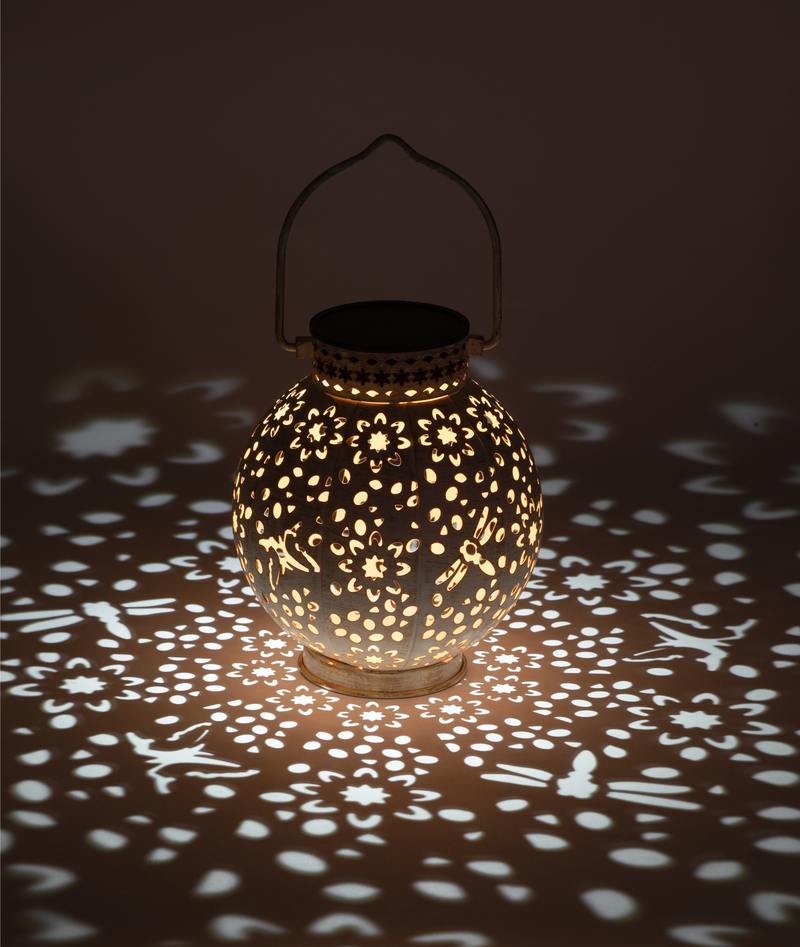 ЭРА ERASF22-59 (арт. Б0057658) — садовый светильник-амфора в турецком стиле. Встроенная солнечная батарея накапливает энергию в течение светового дня, даже в пасмурную погоду. Впечатляющий световой эффект в виде 3D-точек разного размера достигается оригинальной перфорацией плафона в форме шара. Высота уличного садового светильника — 15 см. Имеется металлический подвес-ручка для удобного переноса и быстрого размещения в любой части сада. Светильник-фонарик на солнейчной батерее окрашен стойким способом в бело-золотые оттенки с эффектом состаривания. Это придаёт светильнику особую стилистику под восточную драгоценность. Садовые светильники ЭРА "Амфора" светят уютным тёплым светом.