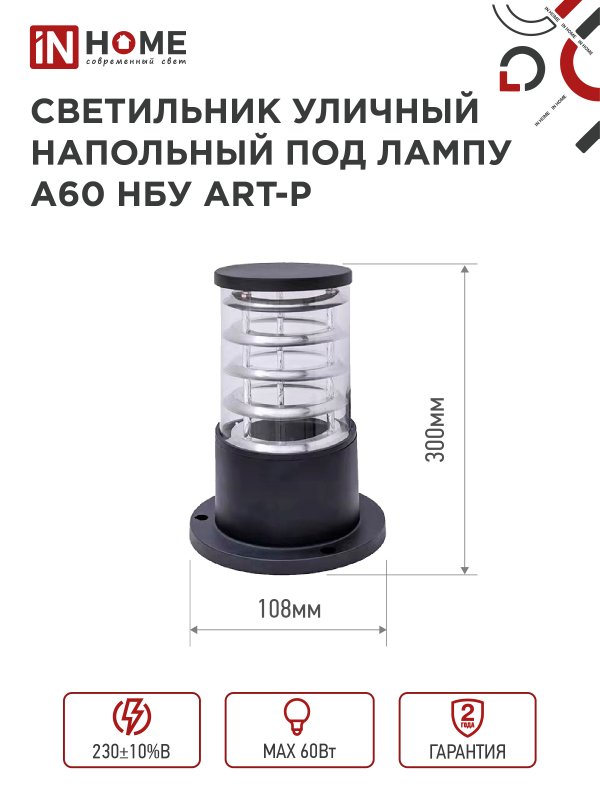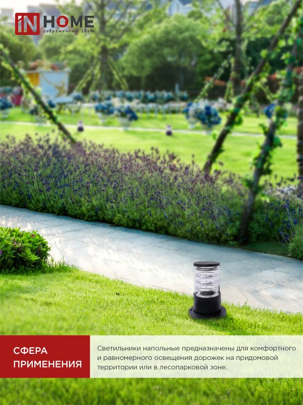 Характеристики Светильник уличный напольный НБУ ART-PS-A60-BL алюминиевый под лампу А60 Е27 300мм черный IP54 IN HOME: