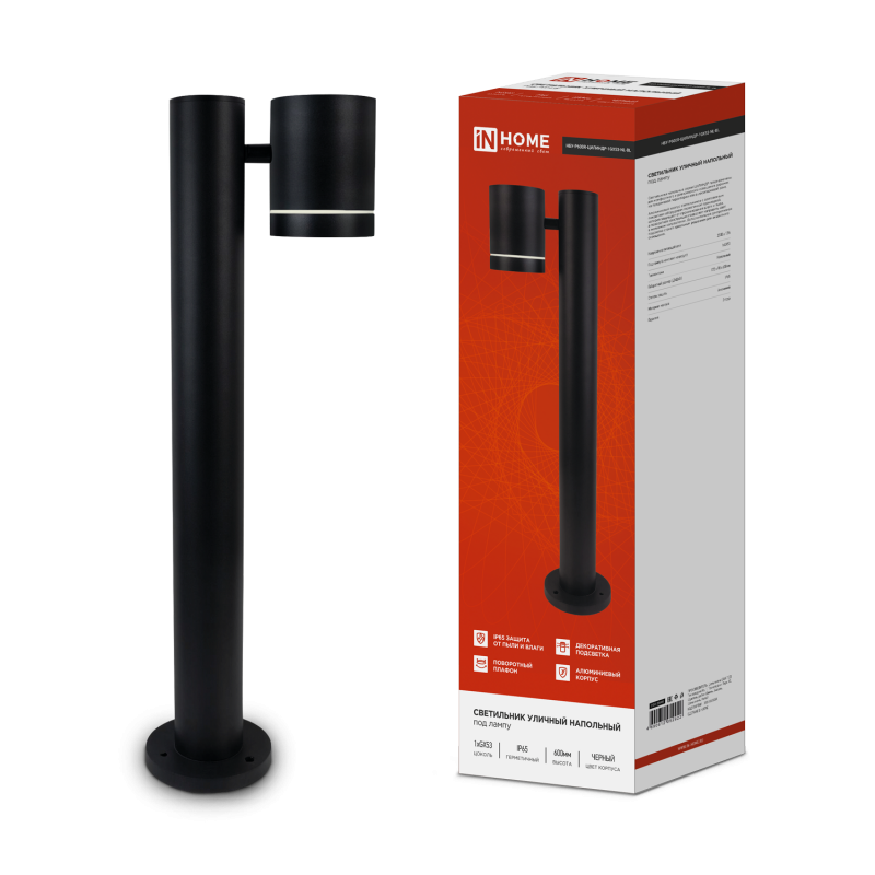 Характеристики Светильник уличный напольный НБУ P600R-ЦИЛИНДР-1GX53-NL-BL алюминиевый под лампу GX53 600мм черный IP54 IN HOME: