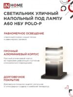 Характеристики Светильник уличный напольный НБУ POLO-SP300-A60-BL алюминиевый под лампу А60 Е27 300мм черный IP54 IN HOME: