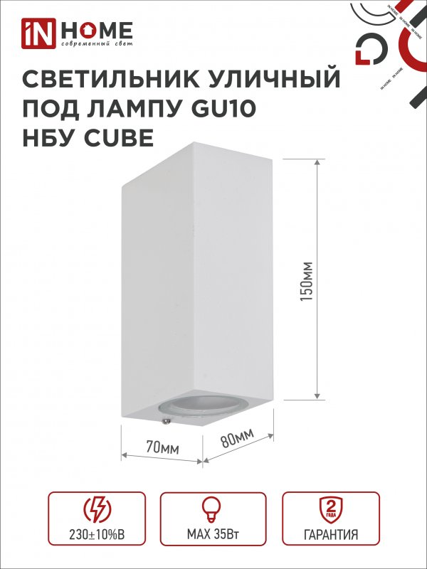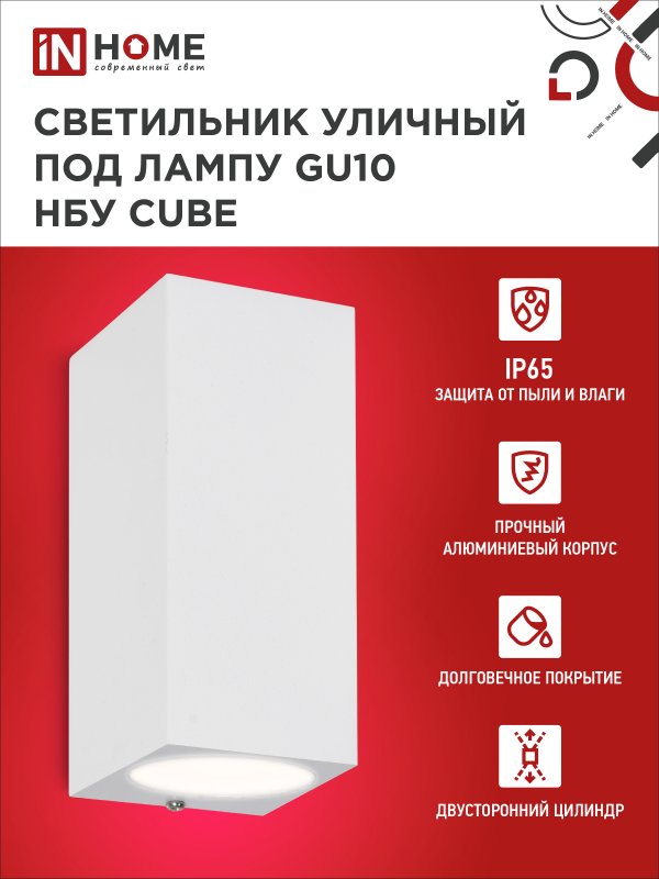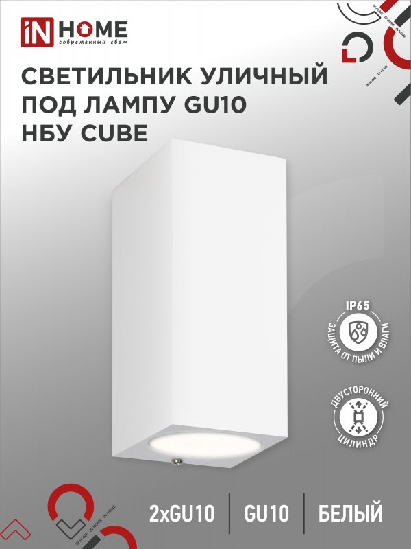 Назначение и применение Светильник уличный настенный двусторонний НБУ CUBE-2хGU10-WH алюминиевый под лампу 2хGU10 белый IP54 IN HOME