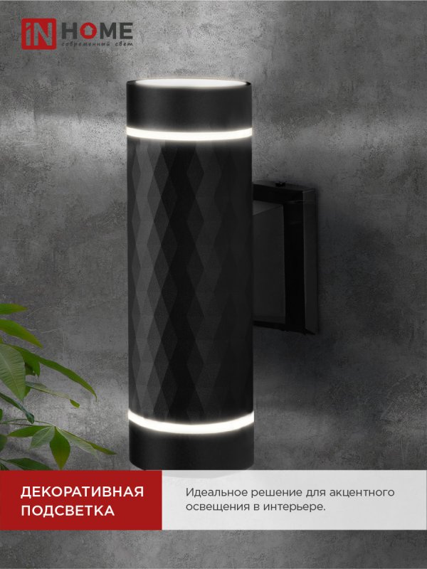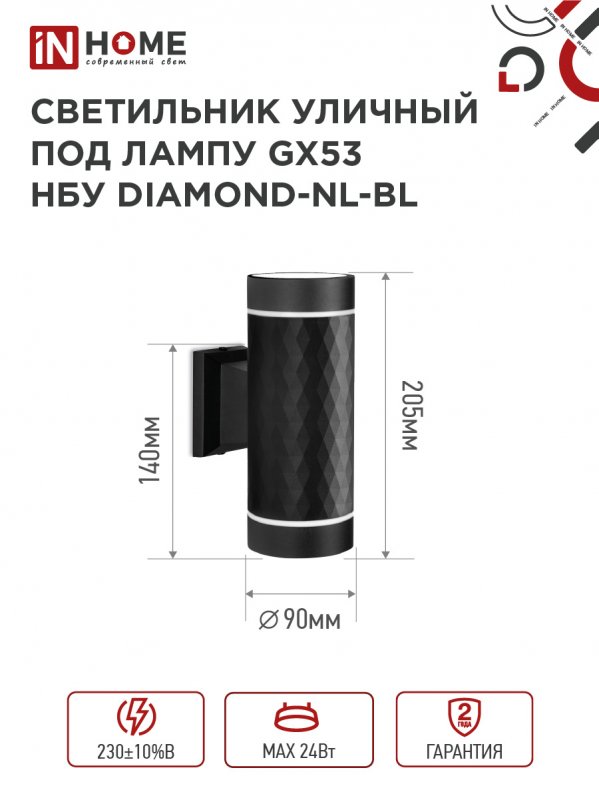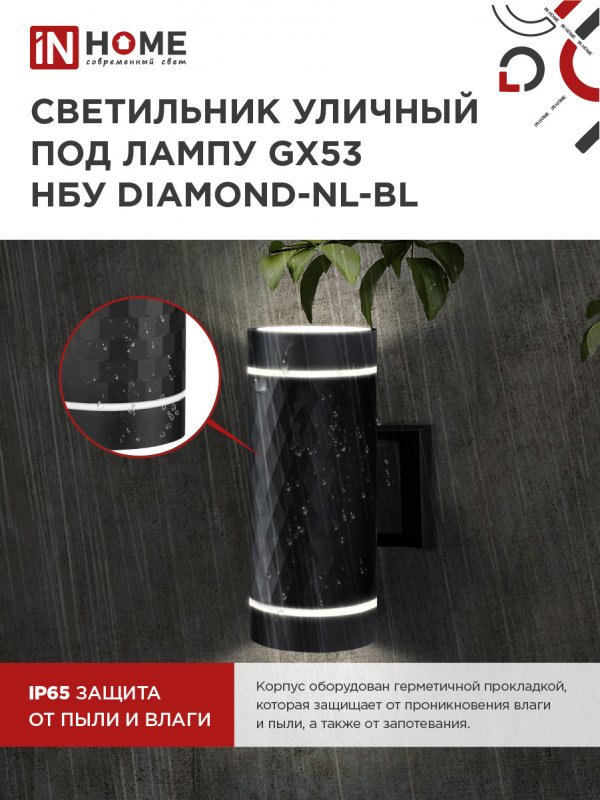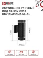 Характеристики Светильник уличный настенный двусторонний НБУ DIAMOND-2хGX53-NL-BL алюминиевый под лампу 2хGX53 черный IP54 IN HOME: