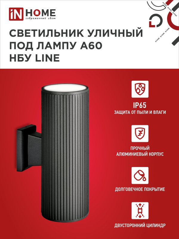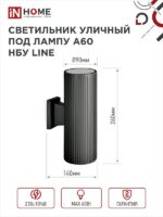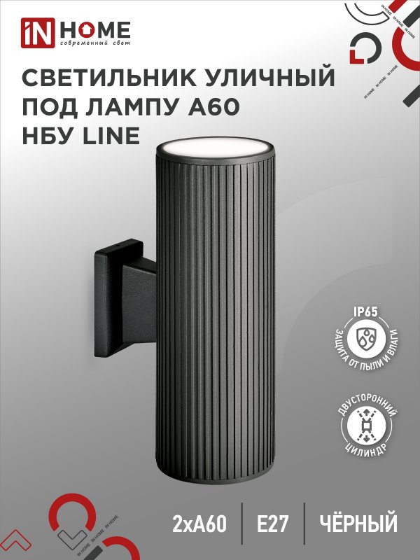 Характеристики Светильник уличный настенный двусторонний НБУ LINE-2хA60-BL алюминиевый под лампу 2хA60 E27 черный IP54 IN HOME: