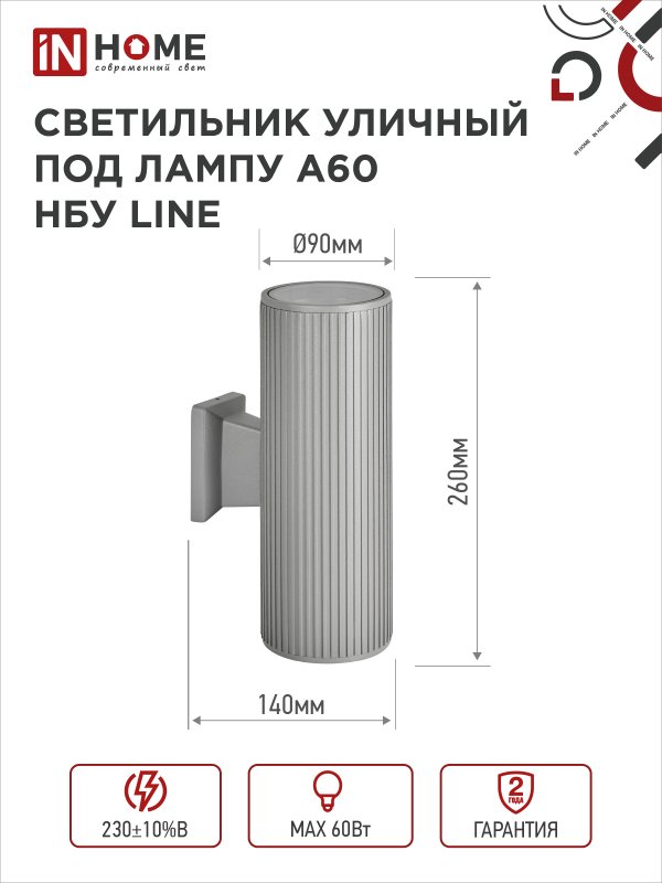 Назначение и применение Светильник уличный настенный двусторонний НБУ LINE-2хA60-GR алюминиевый под лампу 2хA60 E27 серый IP54 IN HOME
