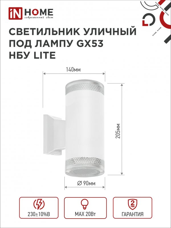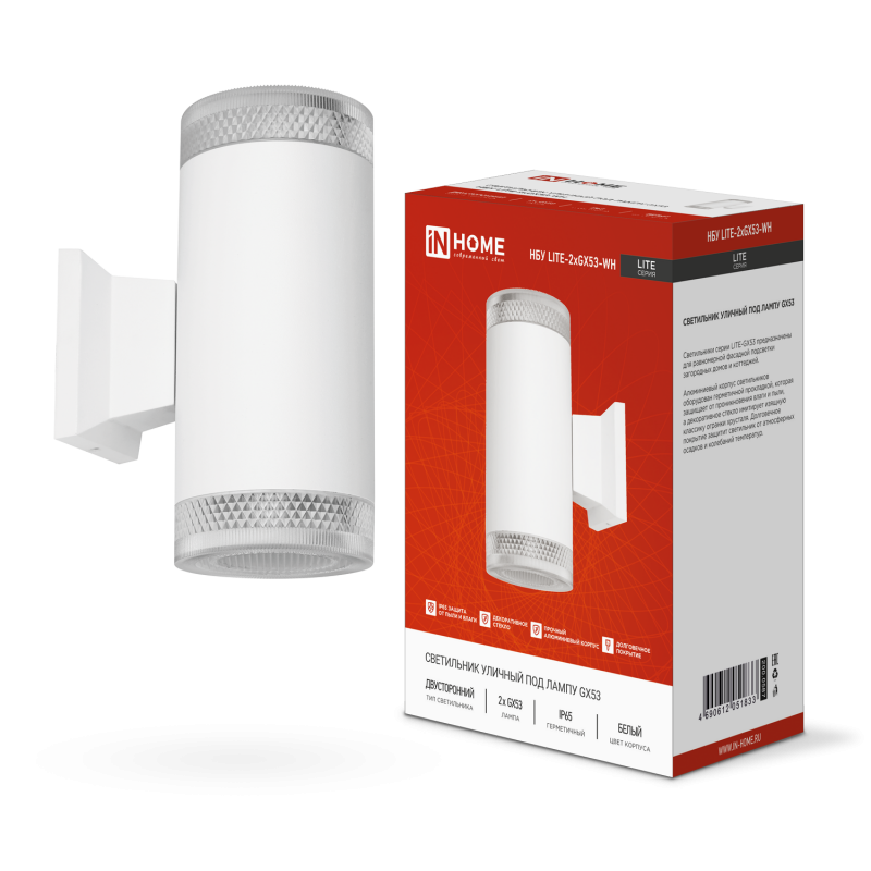 Характеристики Светильник уличный настенный двусторонний НБУ LITE-2xGX53-WH алюминиевый под лампу 2хGX53 белый IP54 IN HOME: